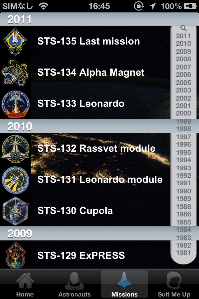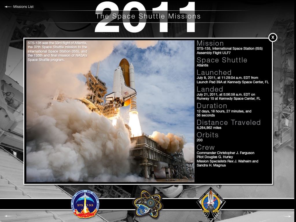 30年のスペースシャトルのミッションの情報を見ることが出来るソフト。