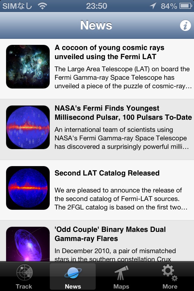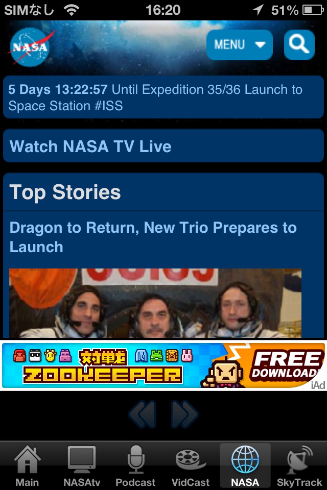 NASAの関連情報を表示するソフト。ニュース/ツイート/写真/動画などを見ることができ、NASA TVも視聴することができます。本家のNASA AppがNASA TVの視聴に対応するまでは、NASA TVを見るのに重宝していました。