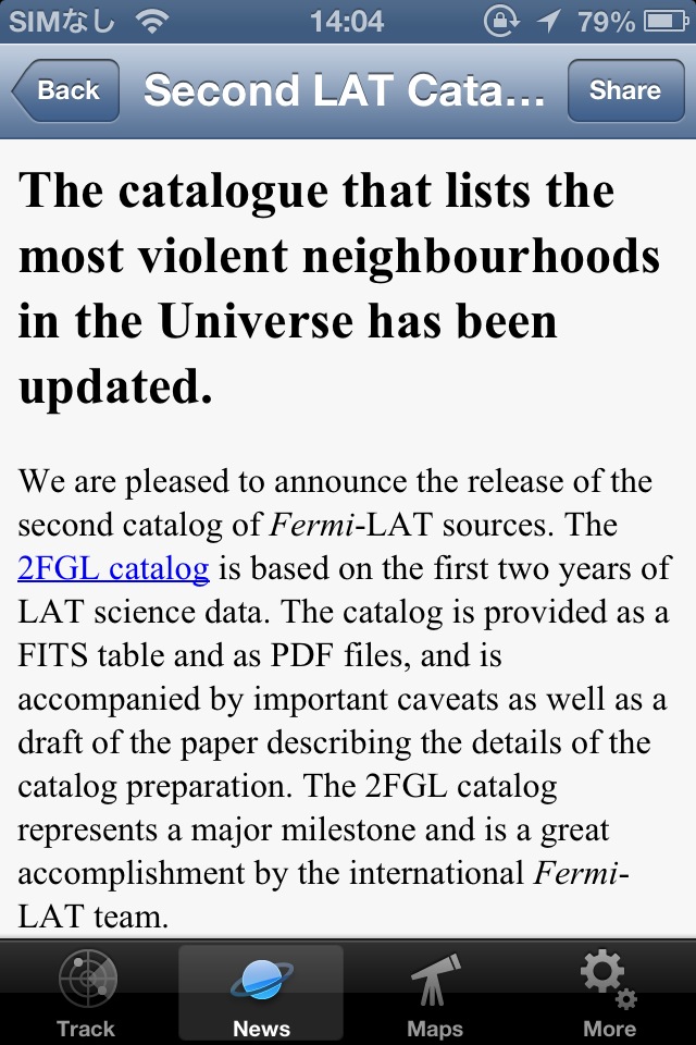 ガンマ線観測衛星フェルミの情報を見ることができるソフト。現在位置・観測結果・映像などが掲載されています。