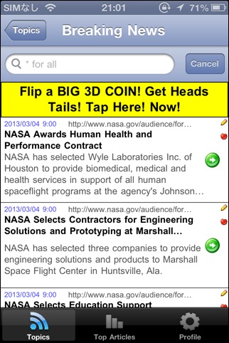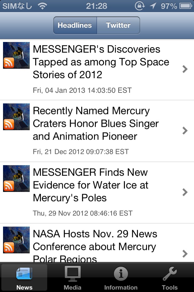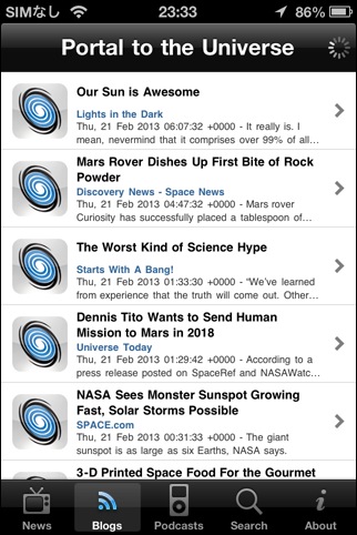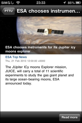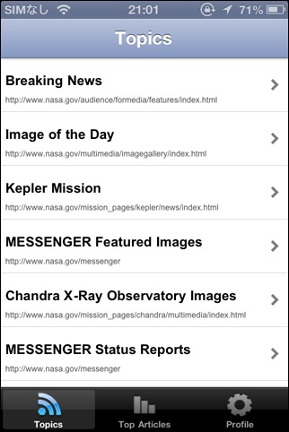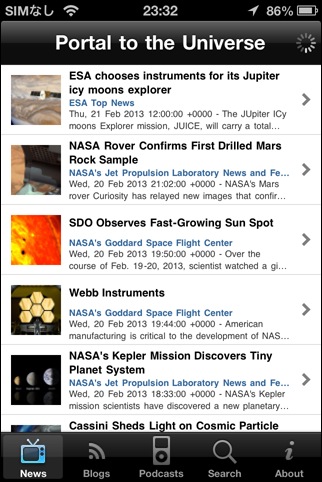 NASAが提供しているRSSフィードからニュース記事を読めるソフト。