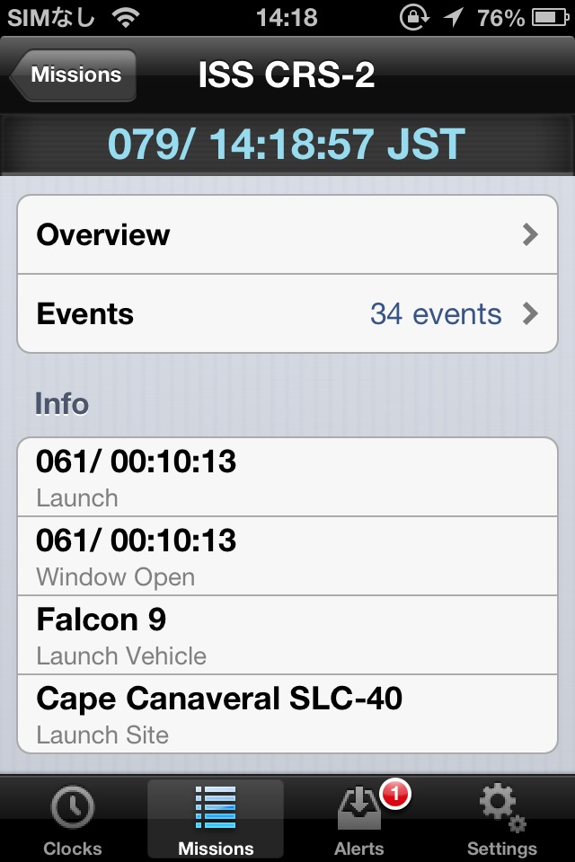 世界中の様々な宇宙開発ミッションのカウントダウンや情報を表示するソフト。Clocks のところには自分が注目しているミッションを登録することが出来ます。
