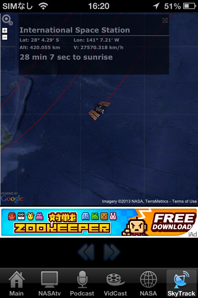 NASA公式のiPhoneアプリ。NASAのミッションや画像や動画などを見ることが出来ます。また、NASA TVの視聴も出来ますので、ロケットの打ち上げなどの時もiPhoneとこのアプリさえあれば、リアルタイムでその様子をみることが出来ます。