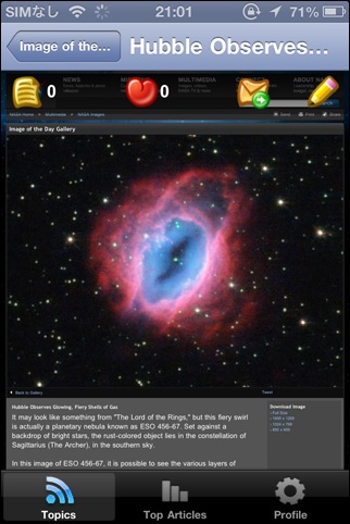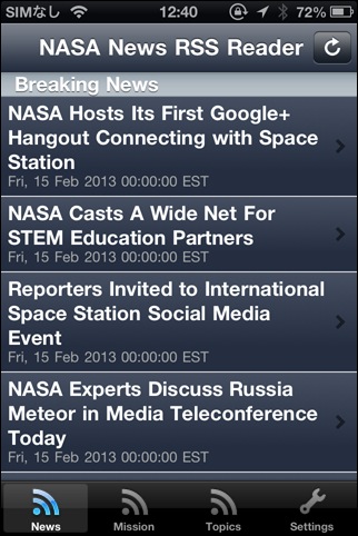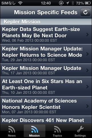 NASA関連のニュースを読むことが出来ます。