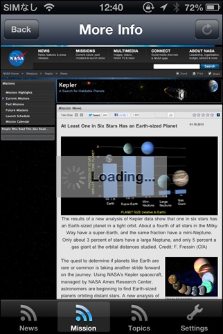 NASAの最新情報を見るためのソフト。こちらはテキスト多めです。