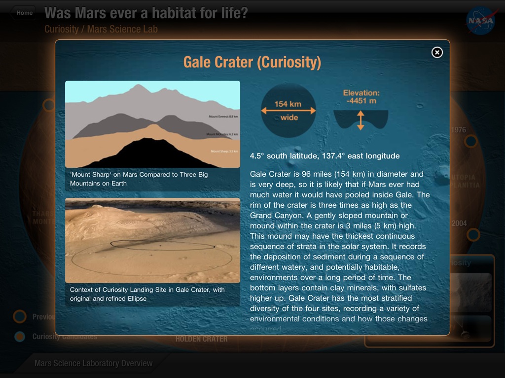 現在のNASAのミッションのハイライト情報をピックアップして表示するソフト。テキストは英語ですが映像も多く見るだけで楽しめます。