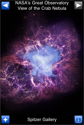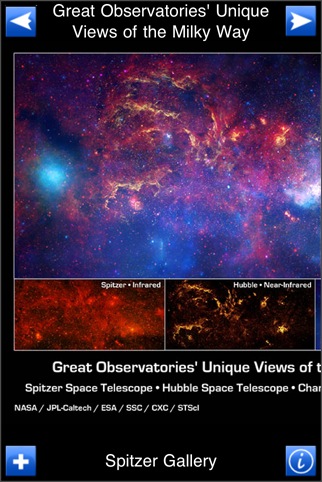 NASAの赤外線宇宙望遠鏡のスピッツアー ( SST : Spitzer Space Telescope ) の映像を見ることができるソフト。画像を順に見ていくシンプルなソフトです。アルバムに画像を保存することも可能です。