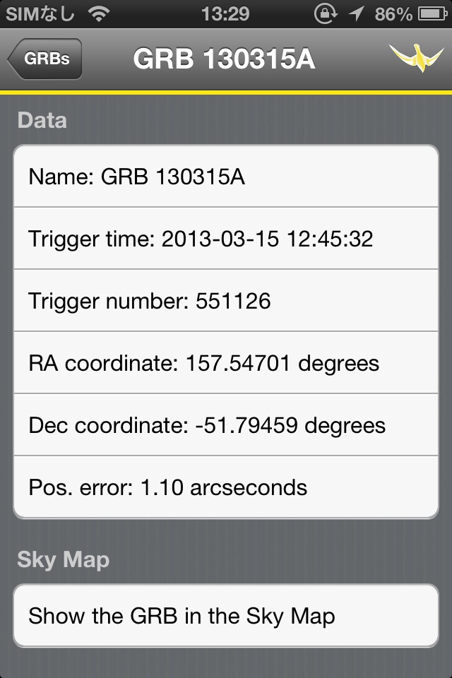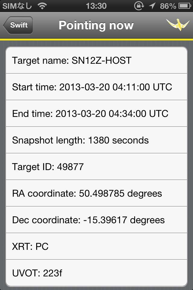 NASAのガンマ線バースト観測衛星スウィフトの情報を見ることができるソフト。現在位置・観測結果・映像などが掲載されています。
