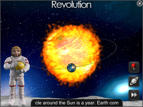 太陽系の天体について学べる教材ソフト。天体を触って動かしたり説明を読んだりクイズに答えたりインタラクティブなものになっています。