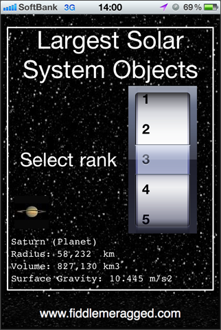 太陽系の天体を大きさ順に表示するソフト。教育とかクイズに使えるかな。