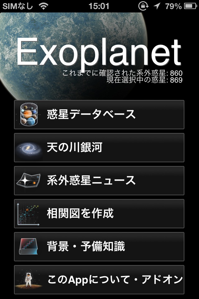 最近はこの太陽系外惑星の研究も進められており、年々沢山発見されており、かつ質量の小さな惑星も見つかっていることが表示されるグラフからも読み取ることが出来ます。情報量が非常に多く、深く読むと色々な発見があります。新しい惑星が発見されたときには、プッシュで通知が画面に表示されます。
