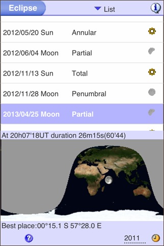 この先数年間の天文現象を見ることが出来るアプリ。ただ、英語であることと、説明は比較的簡素で図による説明があまりないのが残念。
