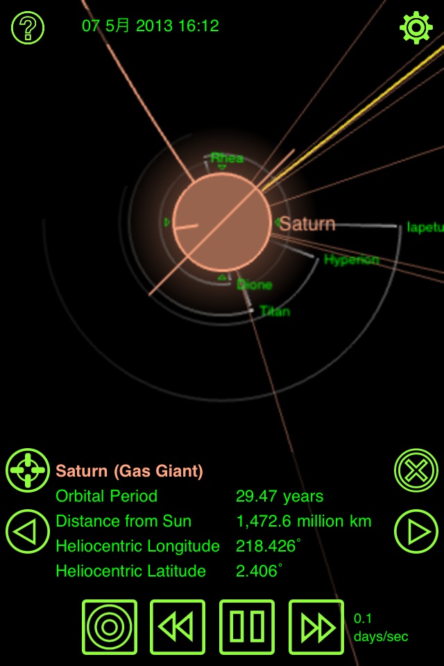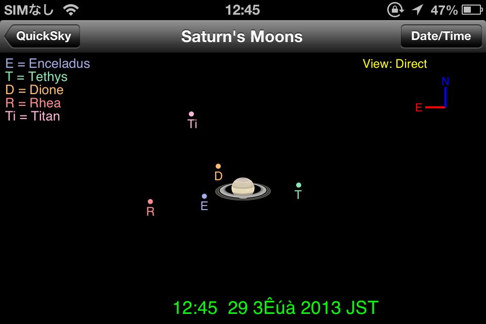 土星の衛星の位置を表示するソフト。