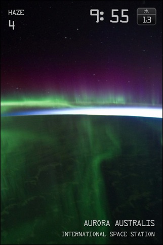 国際宇宙ステーションから眺めた動画に時計や天気を重ねて表示することができます。
