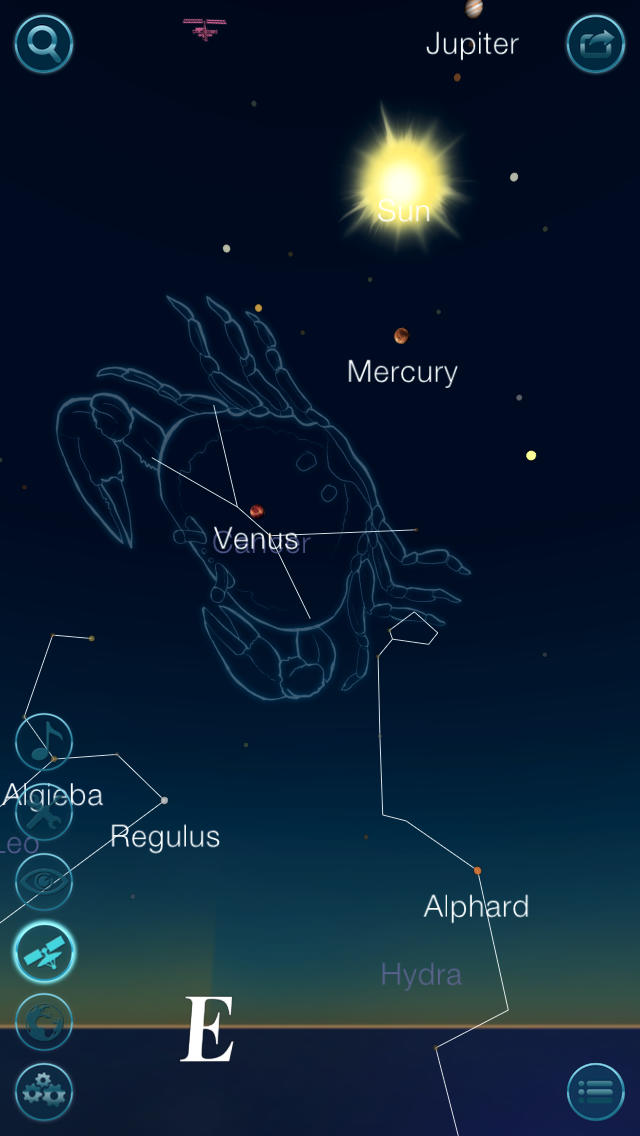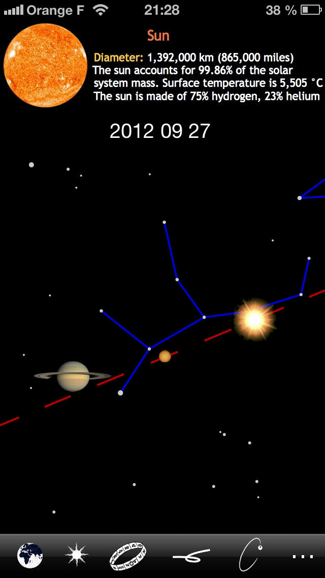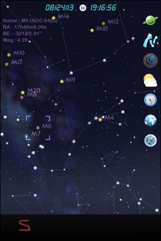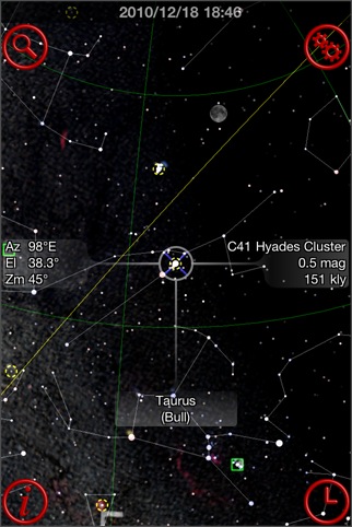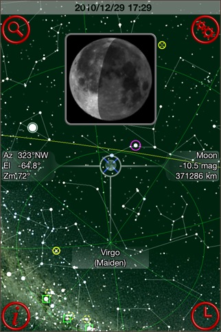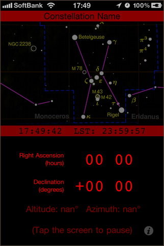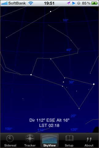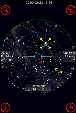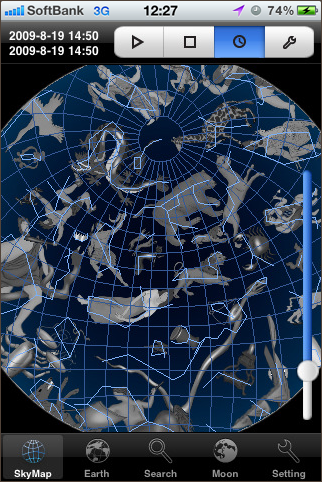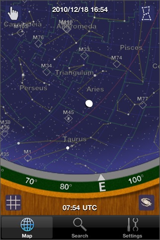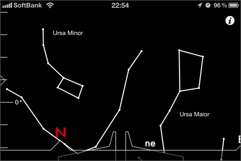 iPhoneを向けた方向に見えている星座を表示するソフトでプラネタリウムソフトとは少し異なります。基本的にソフトを起動した後にはすることがないので、すぱっと星座を確認するには便利かもしれません。[ GPS / 加速度センサー / 電子コンパス ]