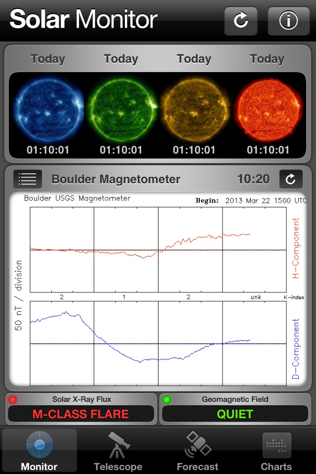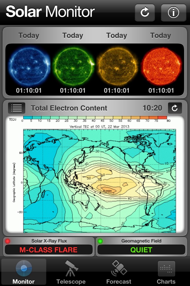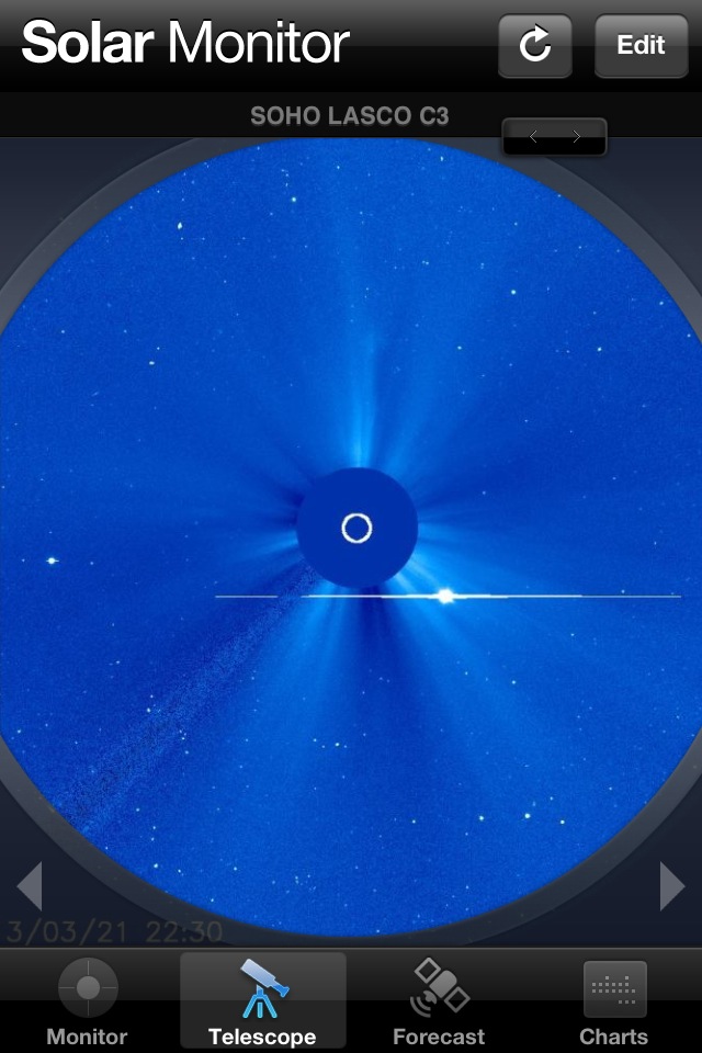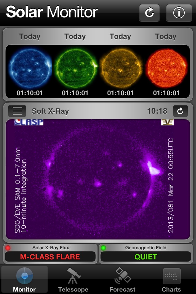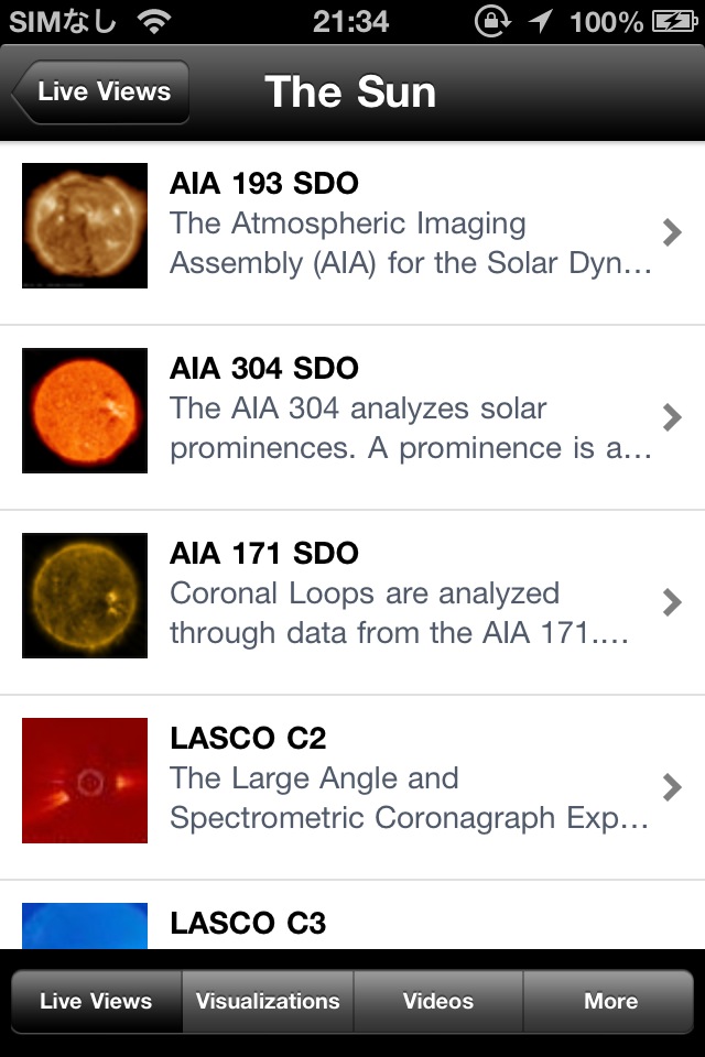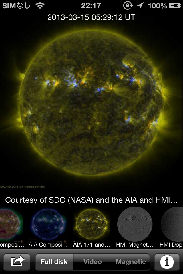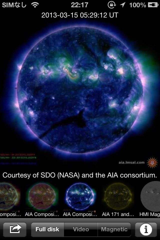 STEREO / SOHO / SDO などからのリアルタイムの映像や多くの様々な情報を表示するソフト。デザインも凝っていてなかなか綺麗です。太陽表面の爆発があった際にはプッシュ通知も行われます。