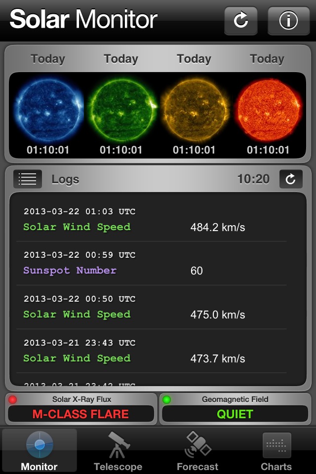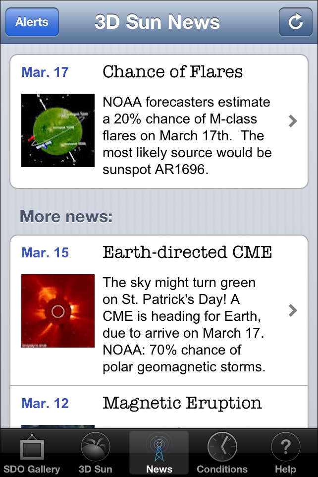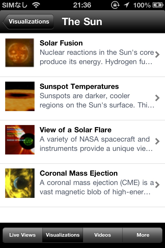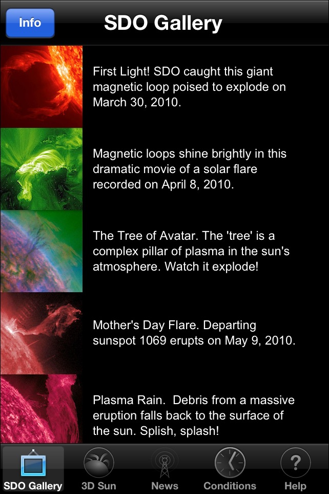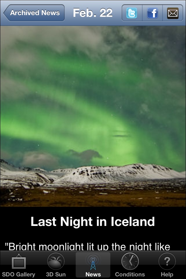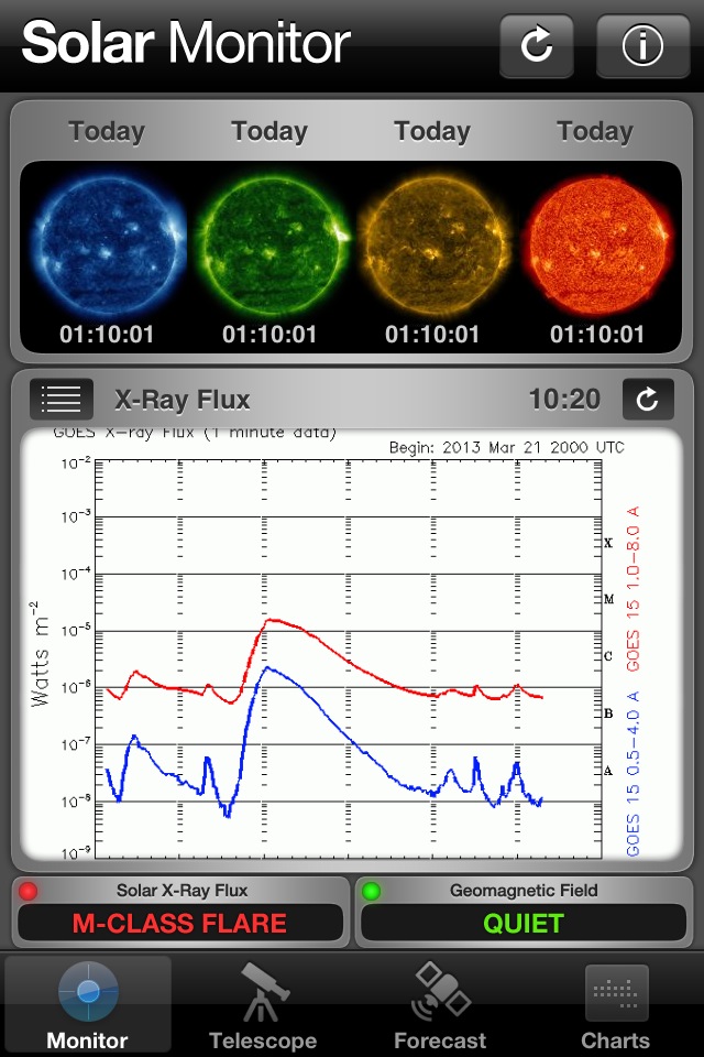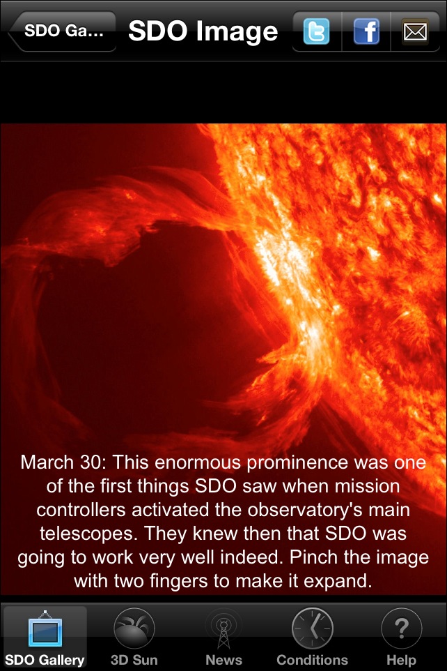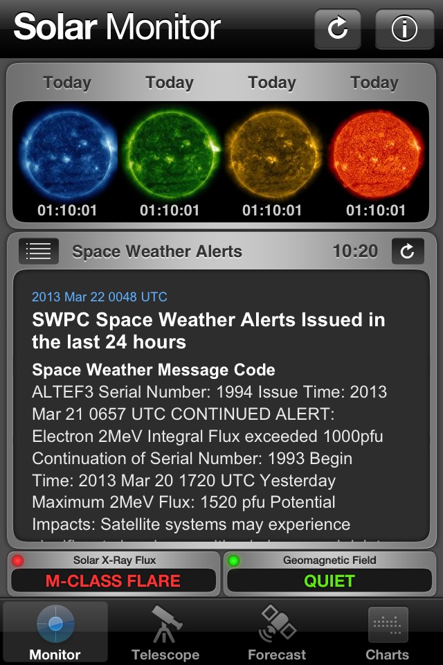 STEREO / SOHO / SDO などからのリアルタイムの映像や多くの様々な情報を表示するソフト。デザインも凝っていてなかなか綺麗です。太陽表面の爆発があった際にはプッシュ通知も行われます。