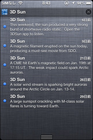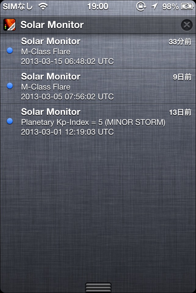 また、太陽に太陽フレア(爆発)変化があった時にプッシュ通知でお知らせもしてくれますので、フレア発生をリアルタイムで知りたい方には必須アプリです!