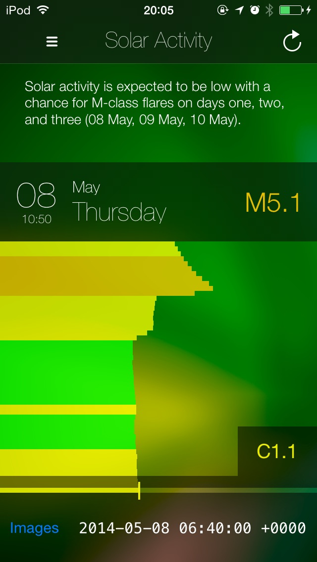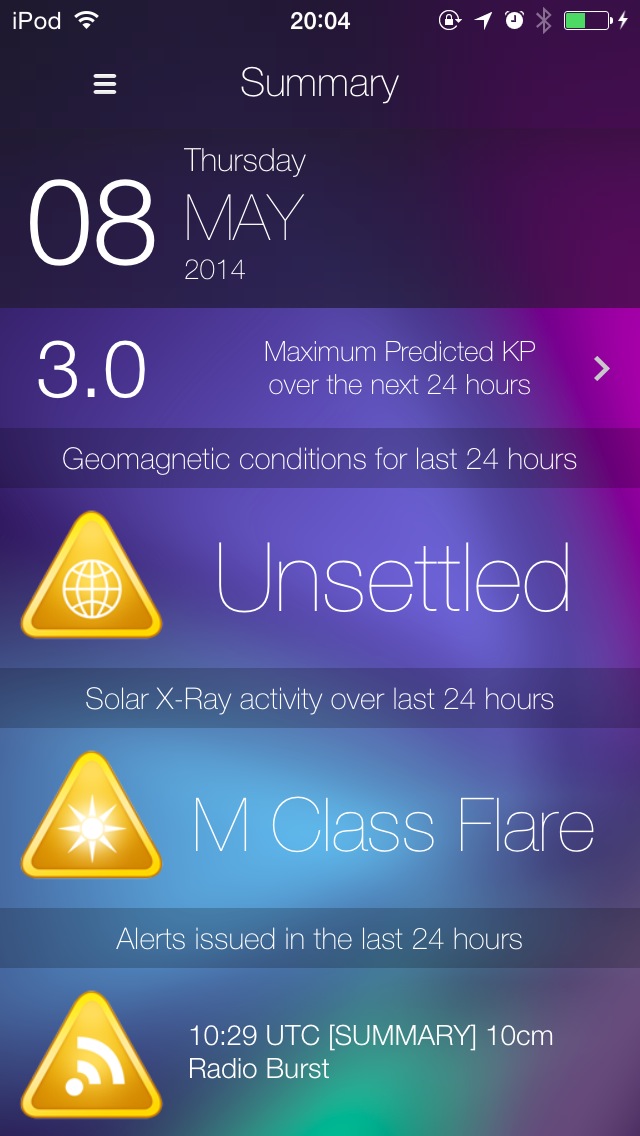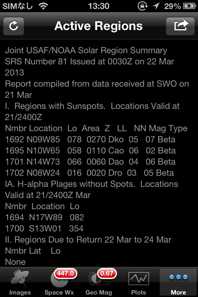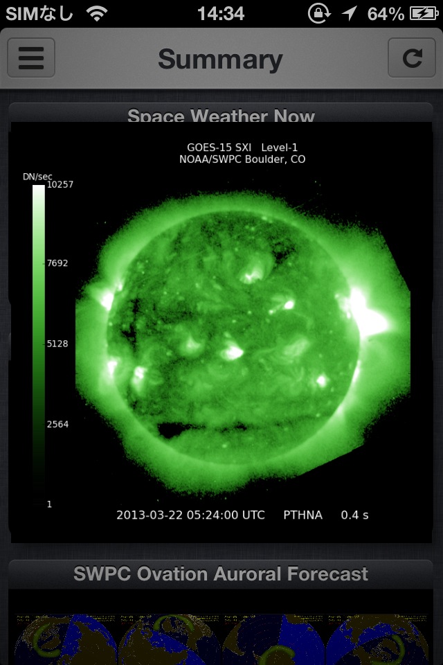 太陽活動に関する専門的かつ本格的なアプリ。情報が膨大すぎて見切れない程。太陽黒点の詳細な情報があるのが珍しいです。