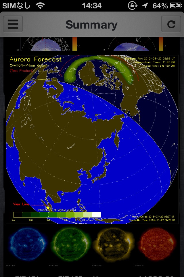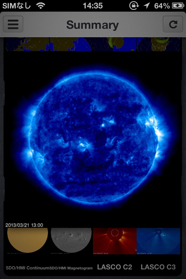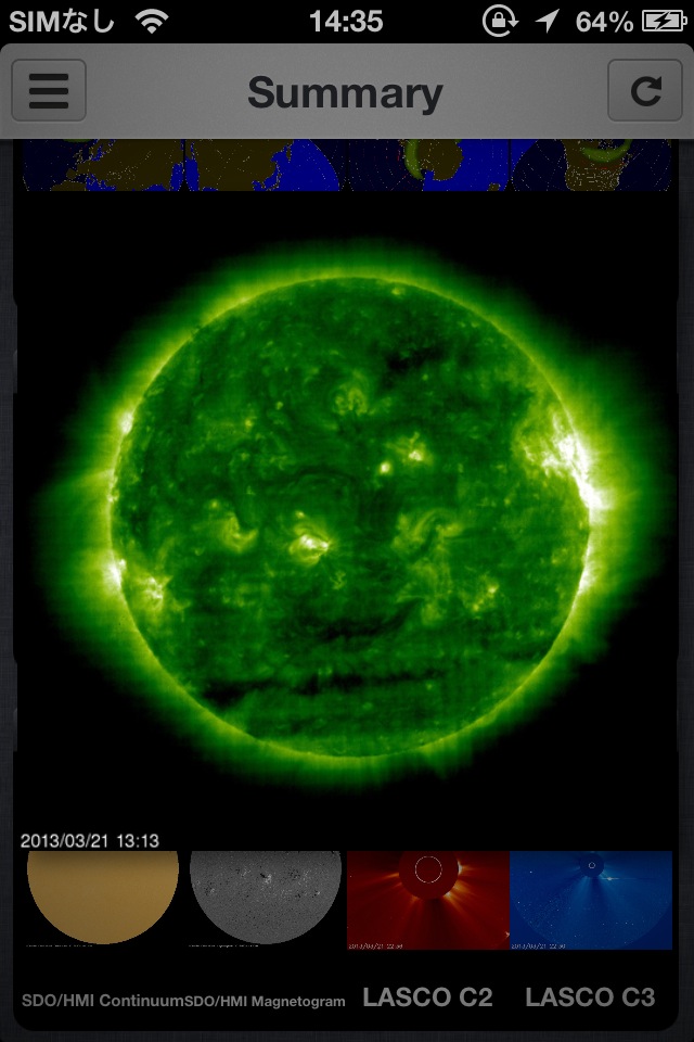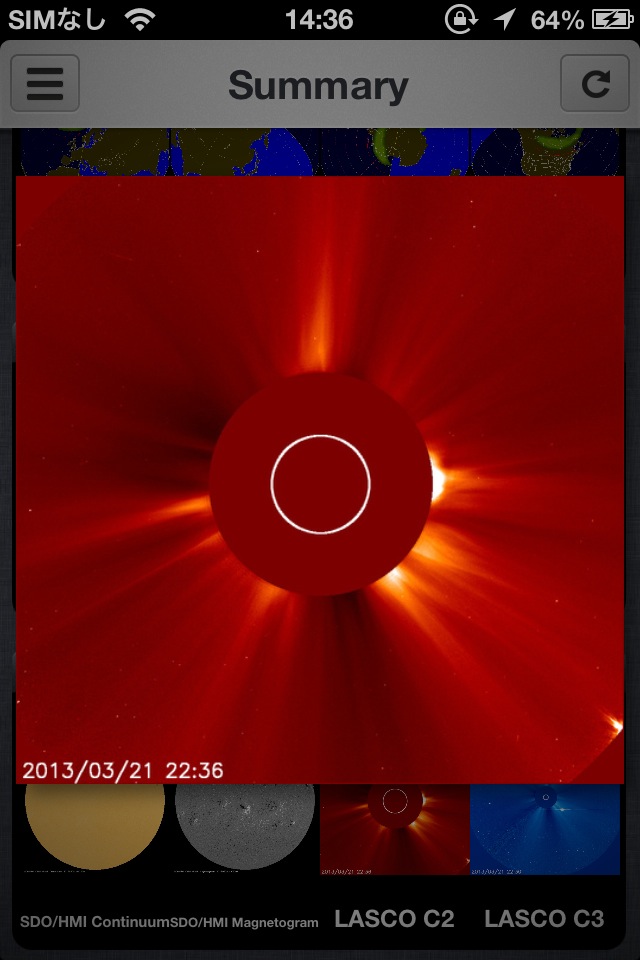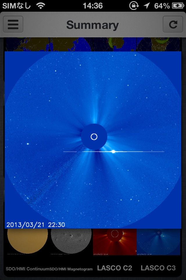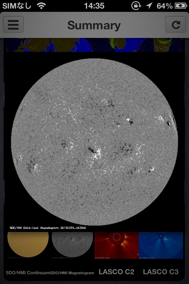 情報量がすごすぎる宇宙天気予報アプリ。初期の状態では4つ程度の画像が表示されるだけなので「 これだけかぁ... 」と思いきや、