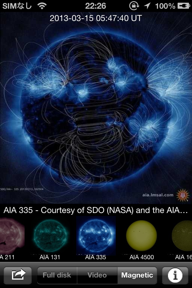 SDOからの映像を見ることが出来るソフト。それぞれの映像は動画再生も可能で、磁場のオーバーレイ表示もできます。