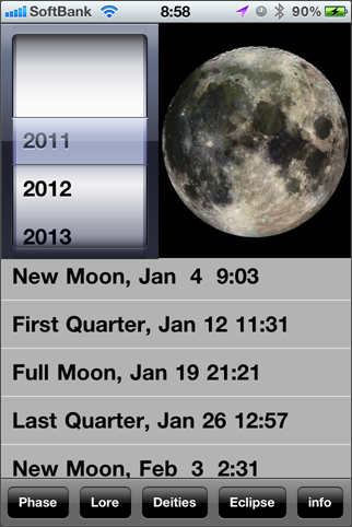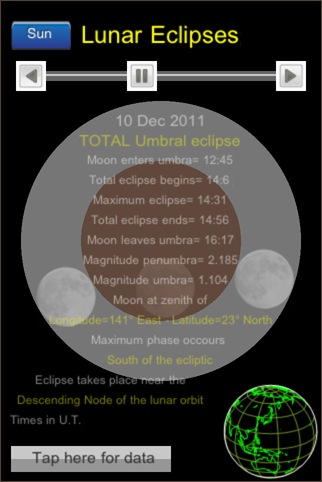 1900年から2100年の間の日食と月食の情報を表示してくれるデータベース的ソフト。日食や月食をアニメーション表示したり、観測可能な場所の地図表示などの機能を備えています。操作体系がiPhone的ではないので、ちょっと分かりづらいですが、長期に渡るデータベースとしてこの価格なら納得です。