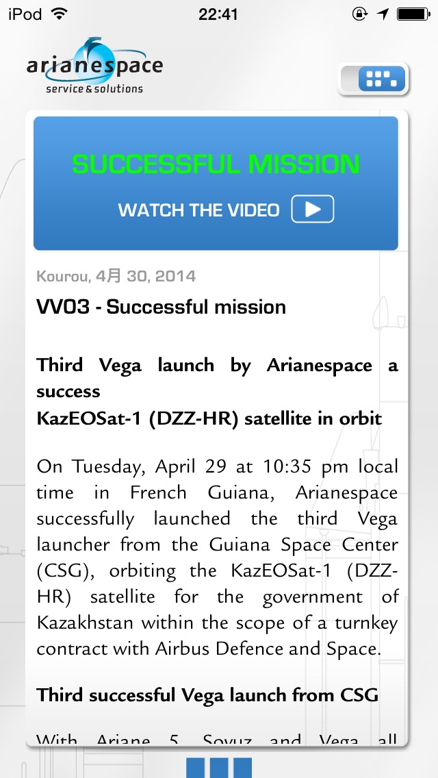 欧州宇宙機関 ( European Space Agency, ESA ) が開発した人工衛星打ち上げ用ロケットに関する情報が見られるアプリ。ニュースやロケットの構造解説や映像を見ることが出来ます。