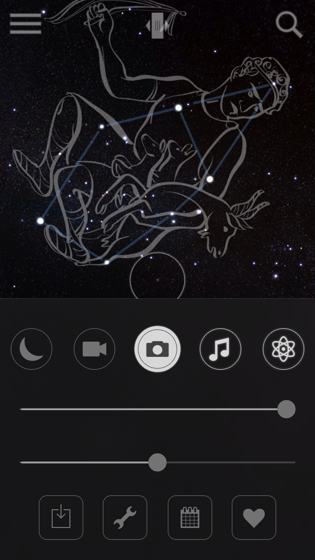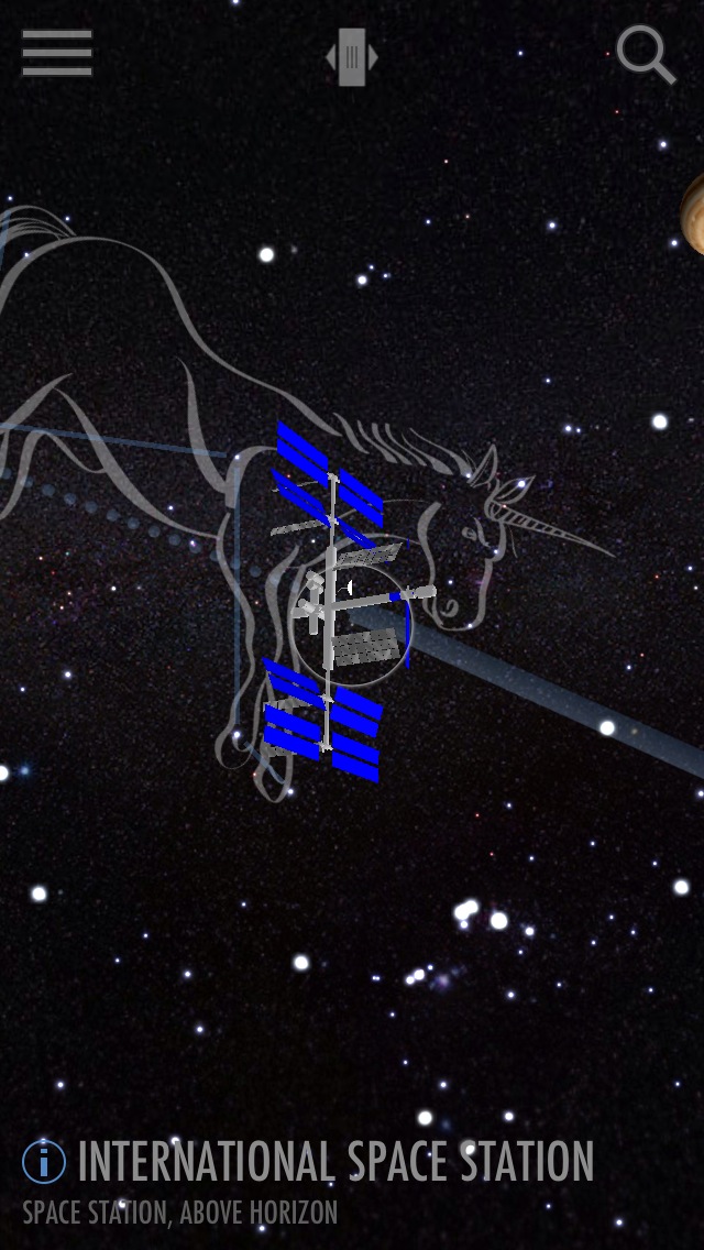 太陽系天体や人工衛星を拡張現実(AR)を使って見える位置をガイドしてくれるソフト。起動するとカメラの映像にプラネタリウムの画像が合成されて表示されます。空にかざすと、そこに見えている星座や惑星や人工衛星が何かを表示してくれます。