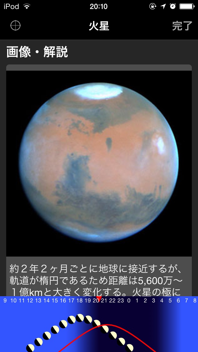 AstroArtsが開発したプラネタリウムソフト。星がまたたくなどの演出が凝っています。日食の様子を再現する機能も備わっています。画面を長押しすると押した付近の天体がリストアップされて、詳しい情報を見たり画面中央にロックしたりすることができます。