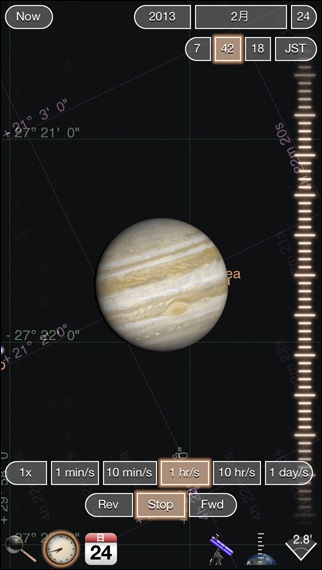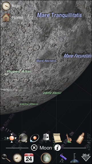 月や惑星のテクスチャーも美しく拡大表示が楽しいプラネタリウムとなっています。衛星にも主要なものにはテクスチャーがついています。宇宙旅行機能もありますので、太陽系内を自由に飛び回れます。
