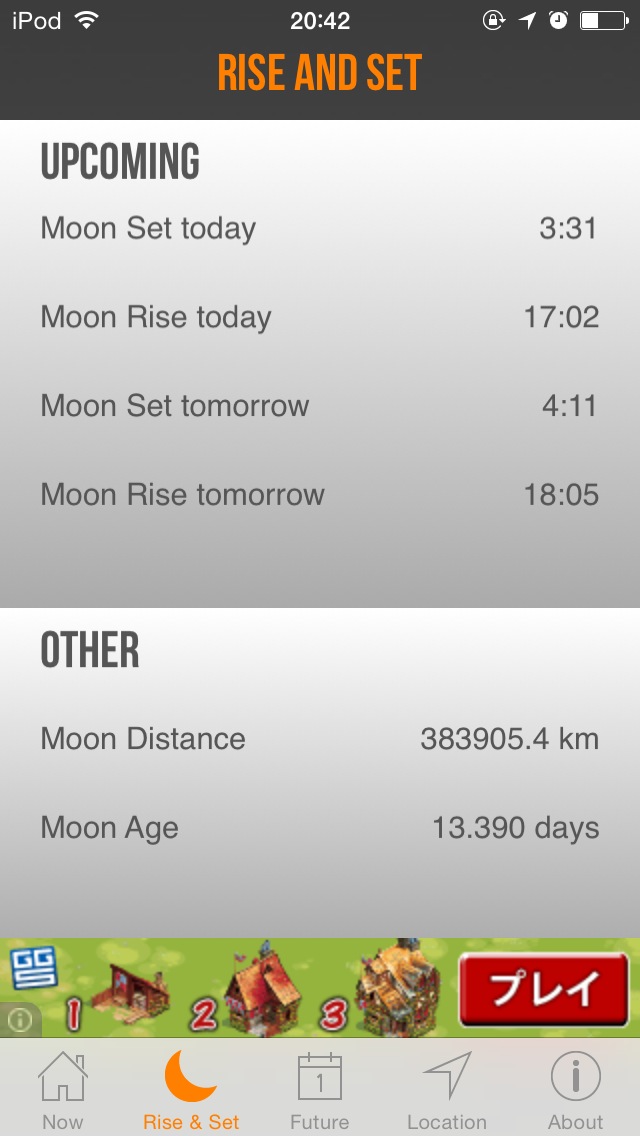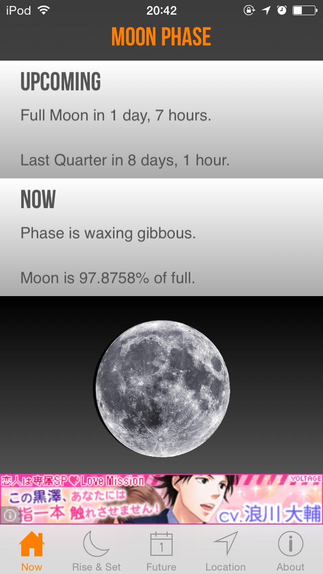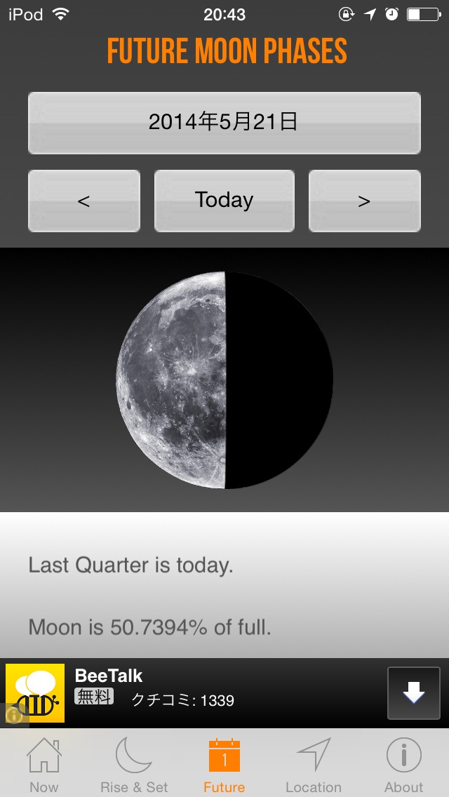ややシックなデザインの月齢表示アプリ。