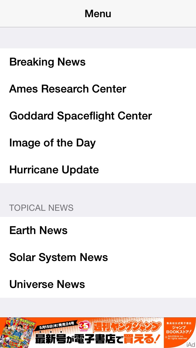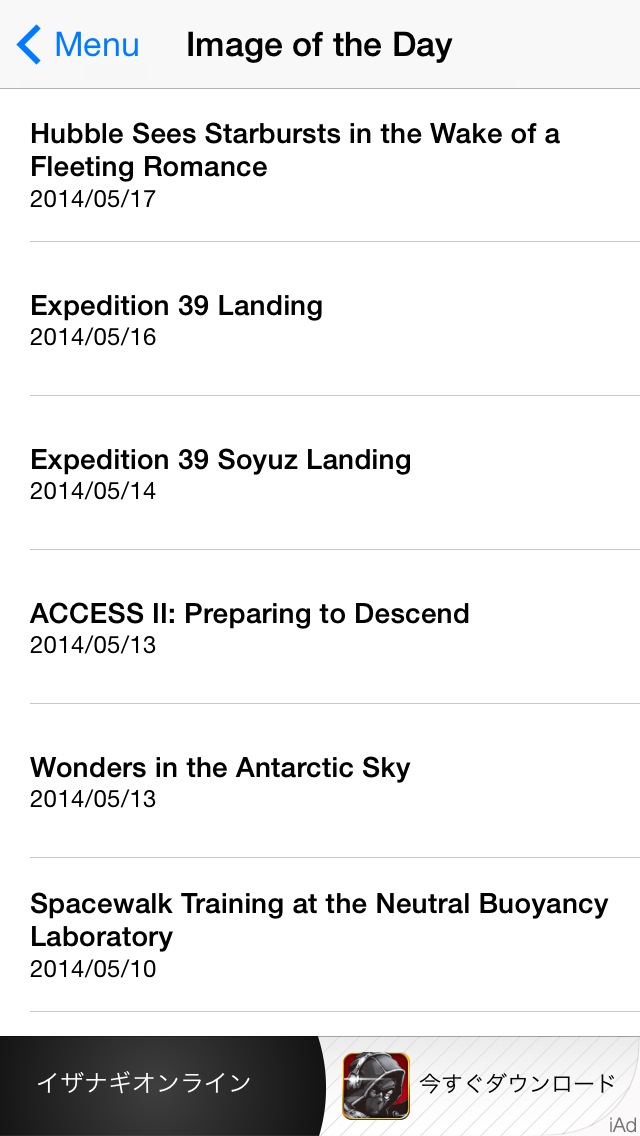 NASAの最新情報を見るためのソフト。こちらはテキスト多めです。