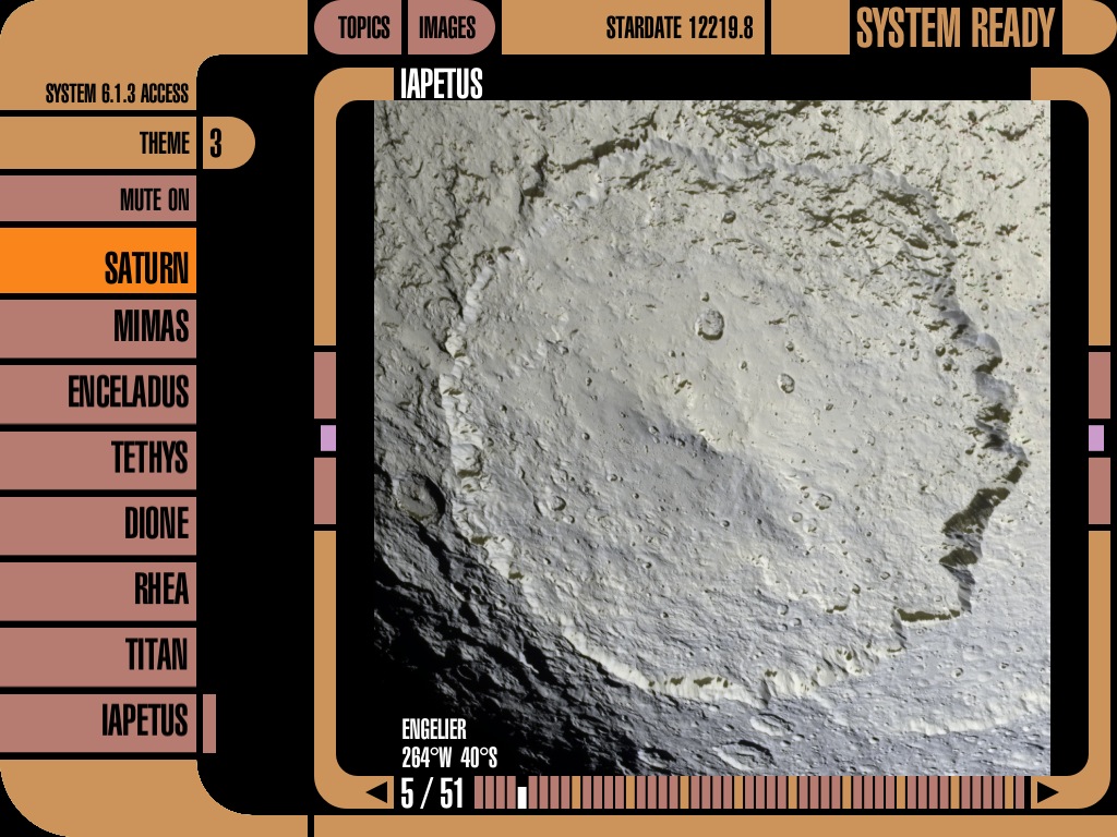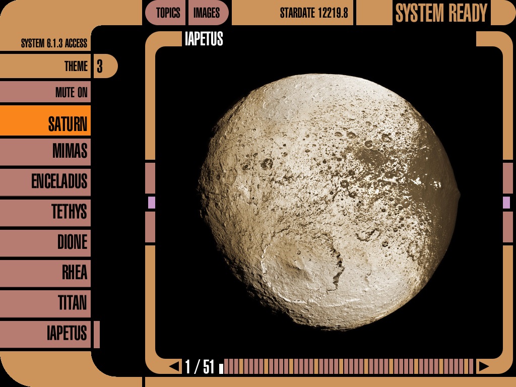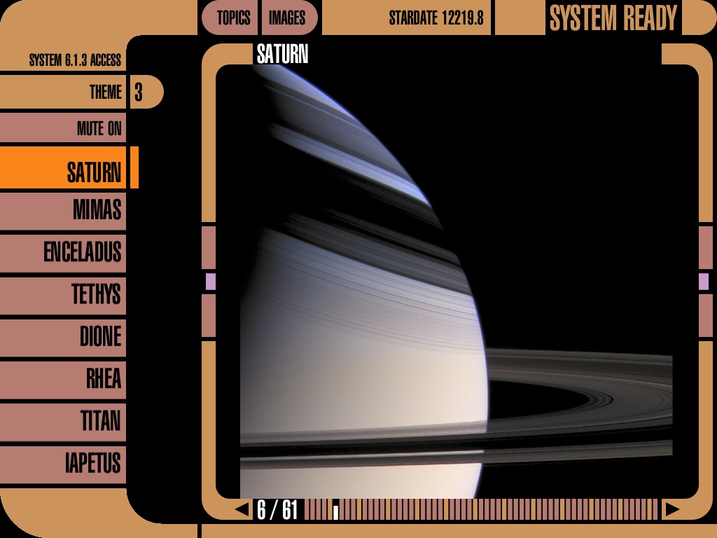 テキストは英語ですが、土星とリングや衛星について500枚を超える映像で解説するアプリ。