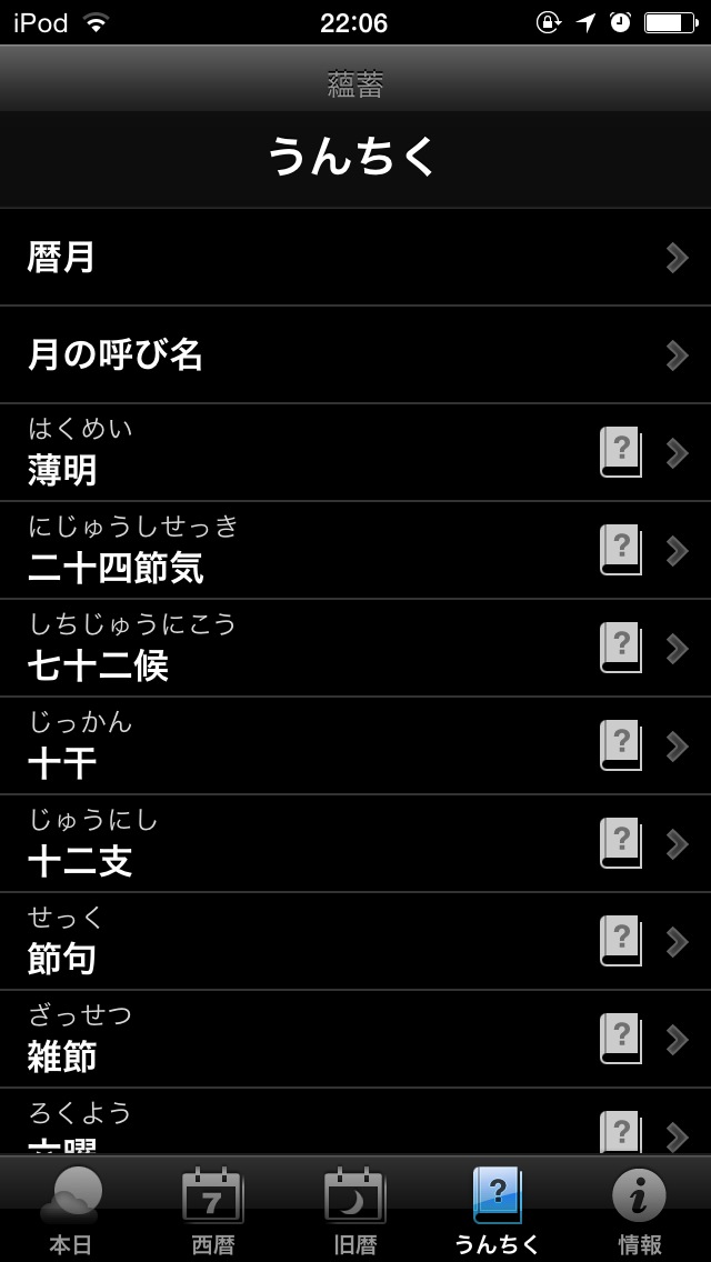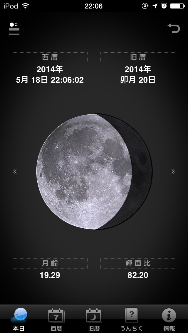 日の出/日の入/月の出/月の入の時刻表示、月の形、月齢カレンダー、月に関するうんちくなど、沢山の機能を詰め込んだアプリ。名前は月読君ですが、太陽の情報も扱っていますのでこちらに分類しています。