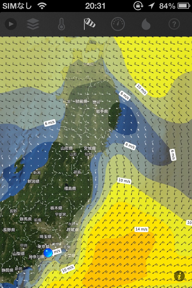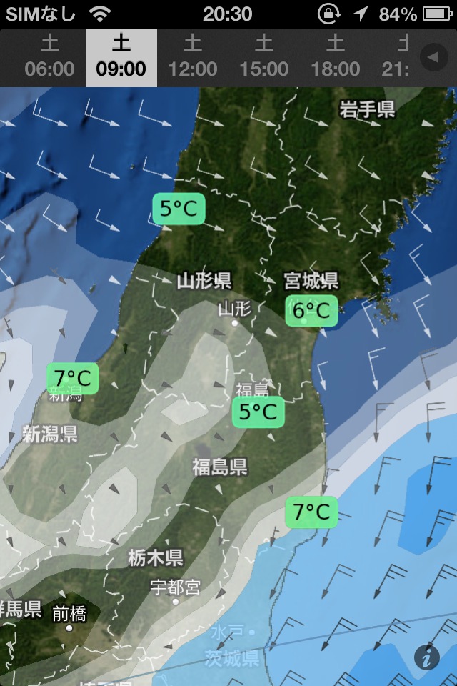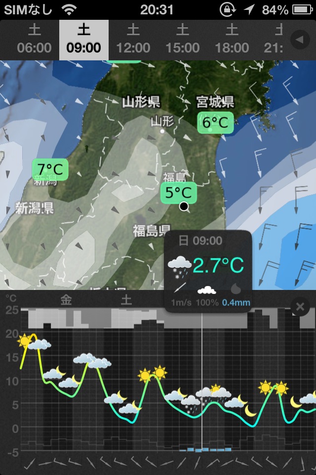 世界の気象地図を詳細に表示するソフト。日時を指定すると、その日時の気温・気圧・風速・風向・雲量・降水量の予測を見ることが出来ます。表示するものは限定できますが、雲量を見るためには [ 全てを表示 ] を選択しなければならないようです ( ここが残念 )。地図上の特定の場所を指定すると、その場所での時系列での予測表示が行われます。観測地探しには最適なソフトといえるでしょう。